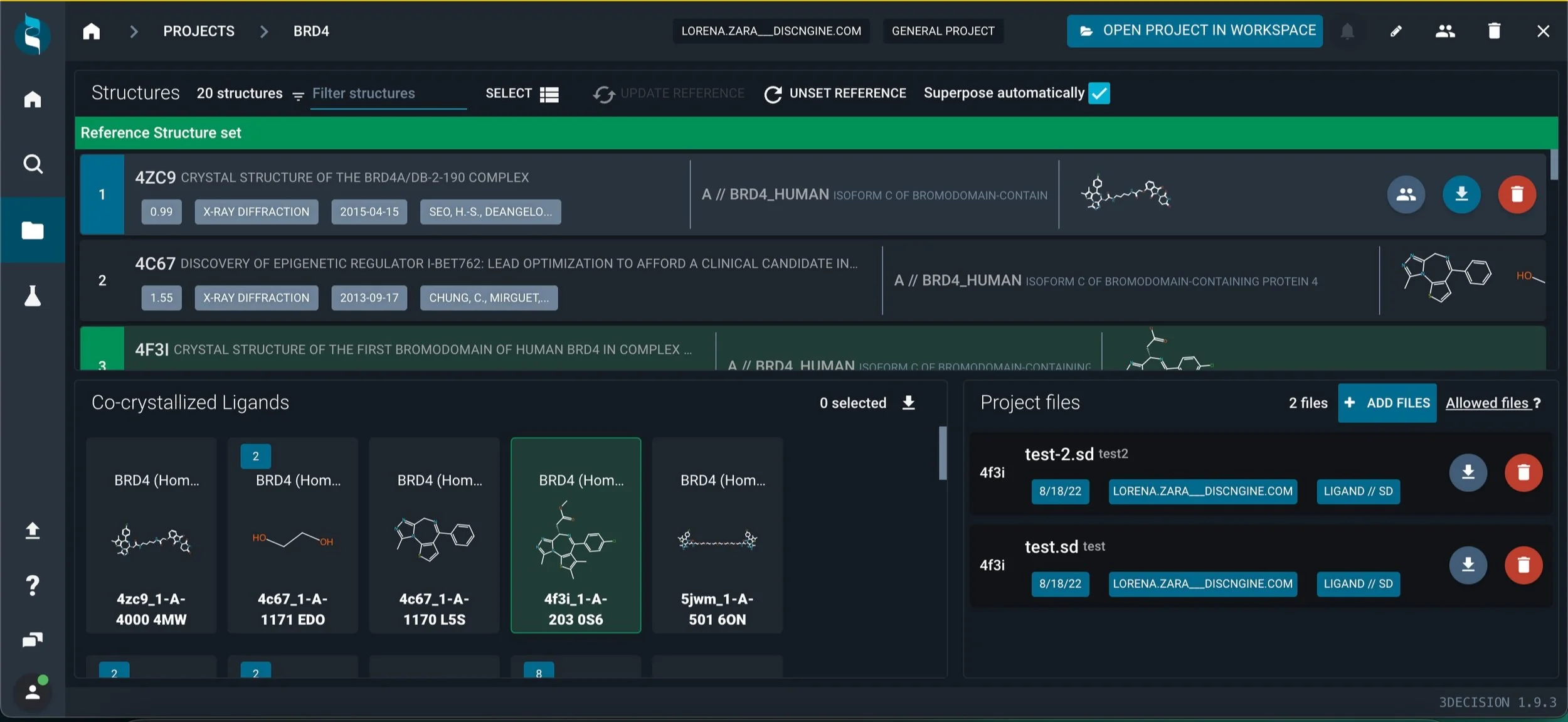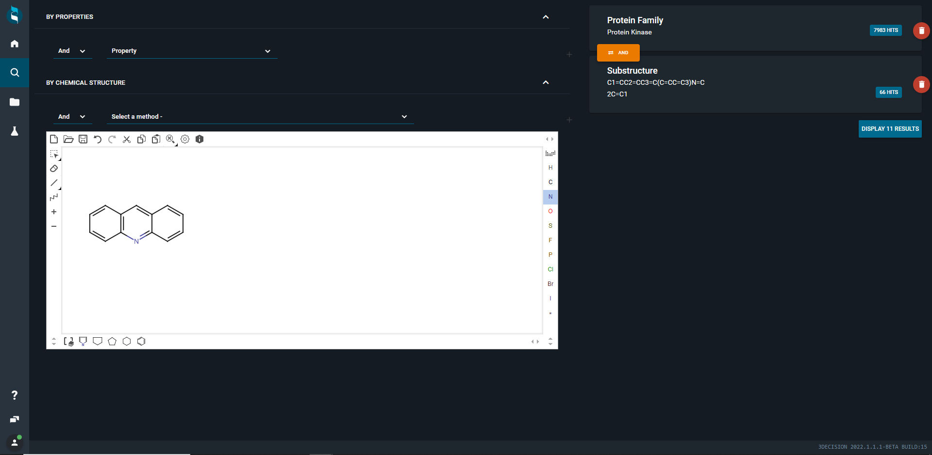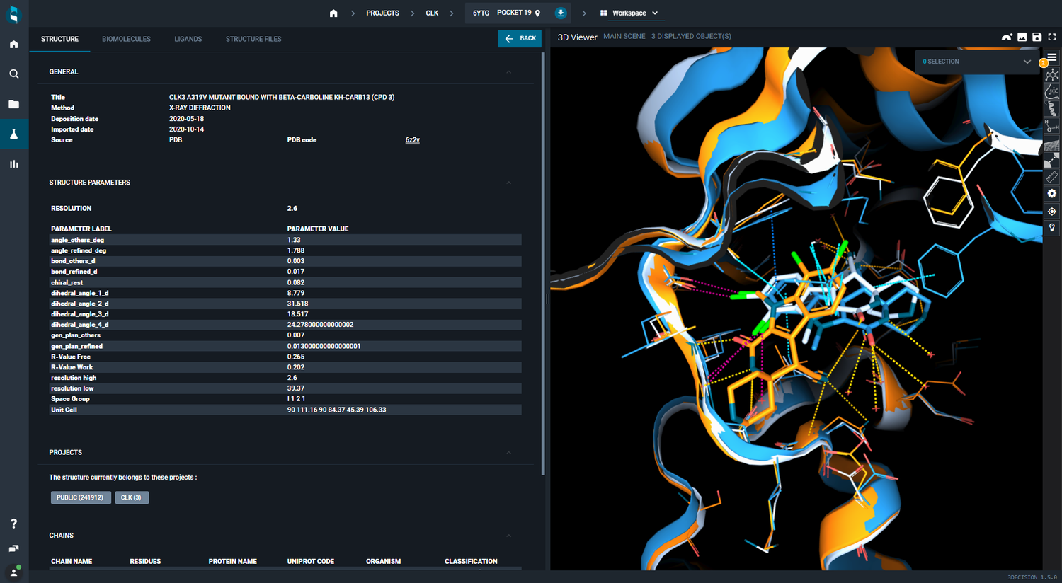 3decision® allows you to perform advanced searches of protein & ligand 3D structural data and analyze the results with a set of integrated tools. The user interface is adapted to both beginners and advanced users and allows the whole drug discovery team to generate, test, and share ideas.